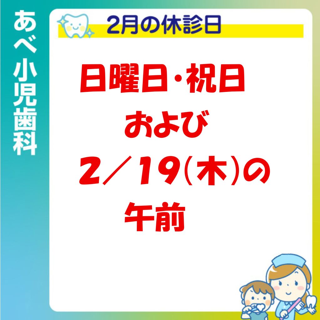 誠に申し訳ございませんが、2/19(木)は9:00~12:00まで【第51回 子供の歯と健康を守る講演会】に出席の為、休診致します。14:30~19:00は平常通り診療しております。御来院お待ちしております。